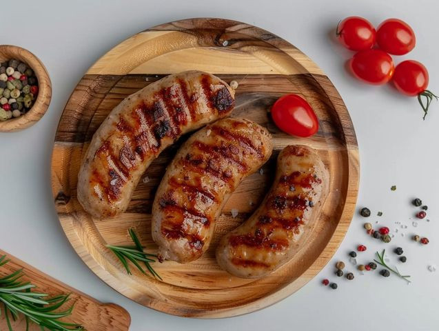 Сардельки «С сыром и вялеными томатами»: Настоящий фаворит для гриля. При нагревании сыр внутри плавится, а вяленые томаты отдают свой пряный аромат. Это практически готовое ресторанное блюдо на вашей решетке.